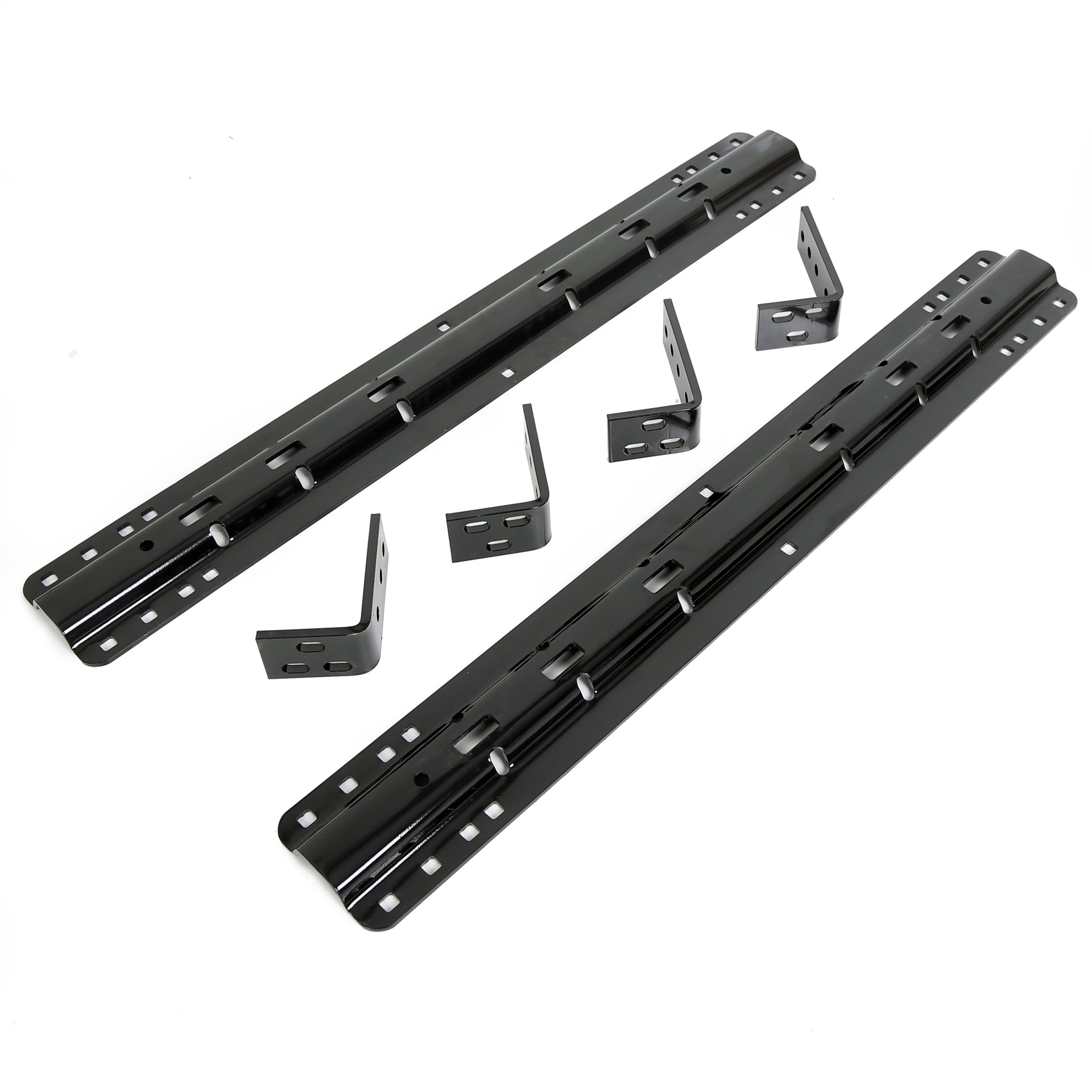 Package Includes Rails, brackets and hardware. After dropping the gooseneck hitch adapter into the 5th wheel base rails, the four pins secure the adapter into place and allow for easy removal as needed.