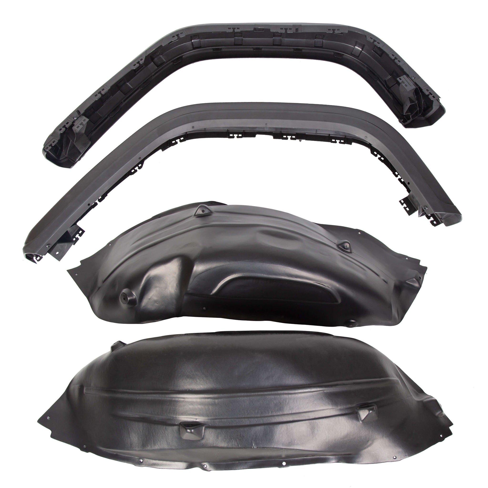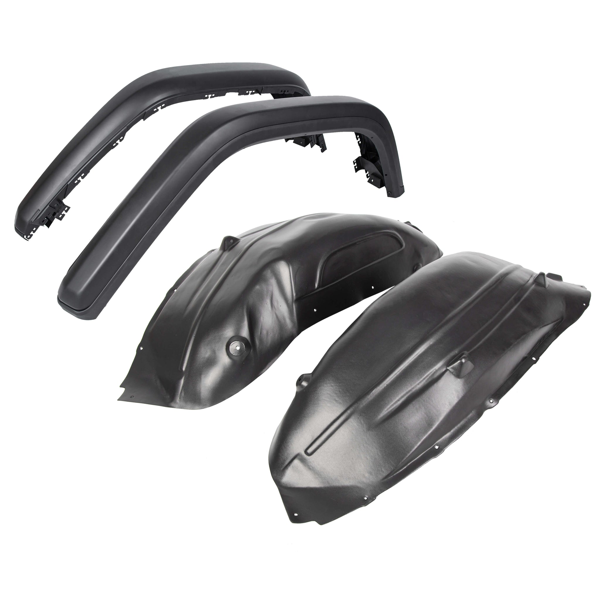 Streamlined design heightens tire clearance and provides max suspension articulation. Can be installed right out of the box or painted to match the Jeep body.