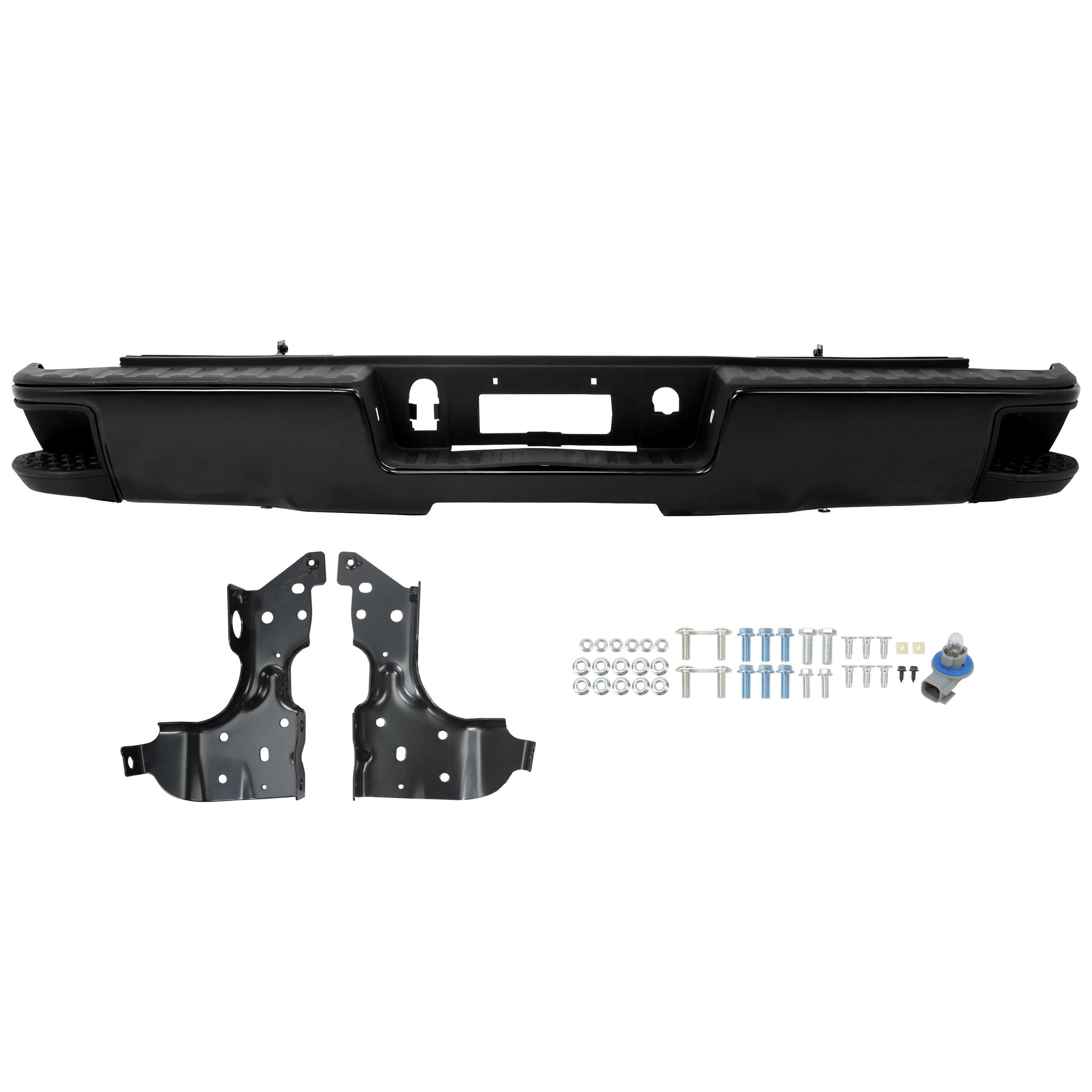 - PACKAGE: 1 x Steel Rear Step Bumper. (Installation Hardware is Included - As the pictures shown.)