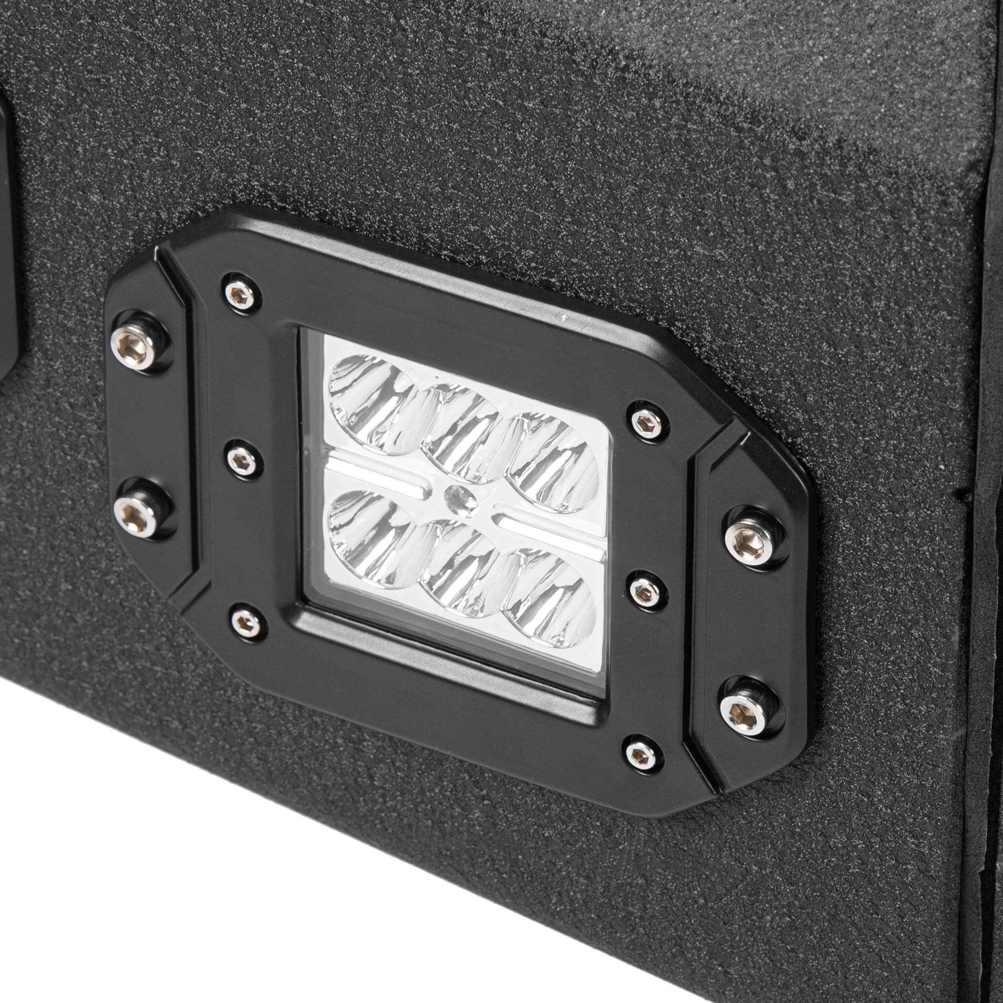 - Item will be sent in 2 packages. Package includes Front 3-piece bumper+hardware and 2 D-rings+ LED Lights.